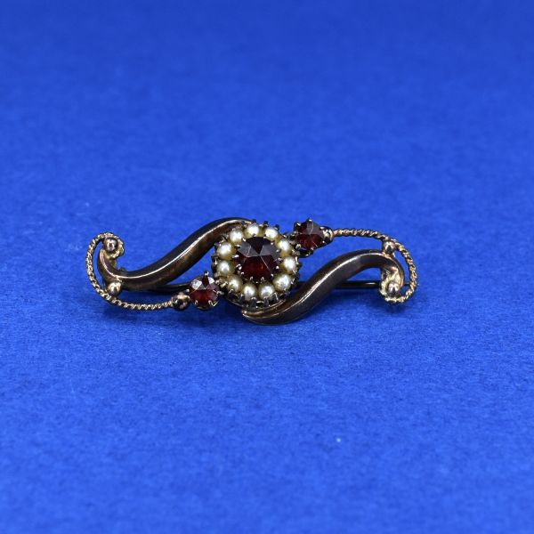 Antique: Brooch with Garnet - gold, River pearls - 1910