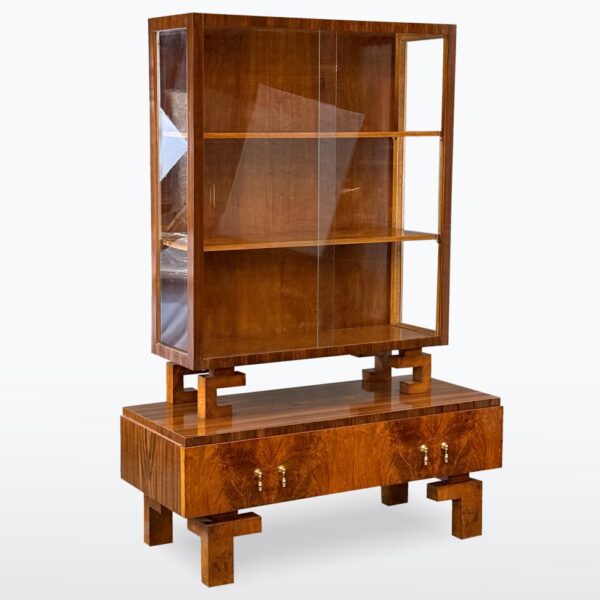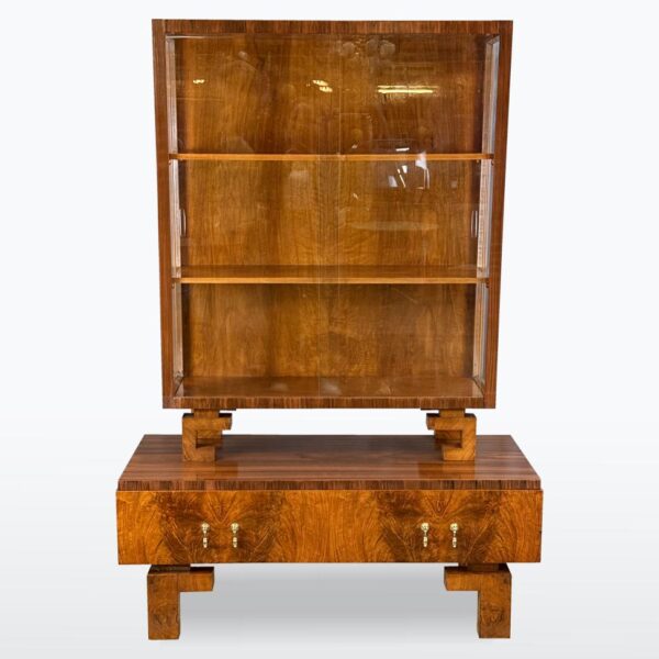 Antique: Display Cabinet - wood, walnut veneer - 1930