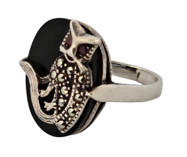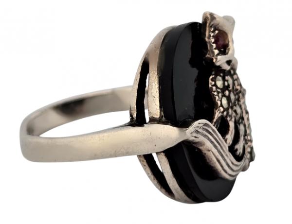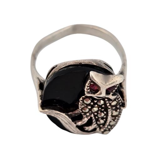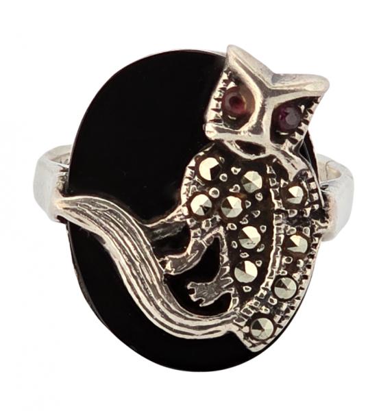 Antique: Silver Ring - onyx, silver - 1930