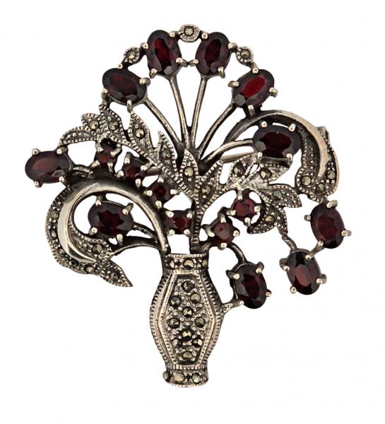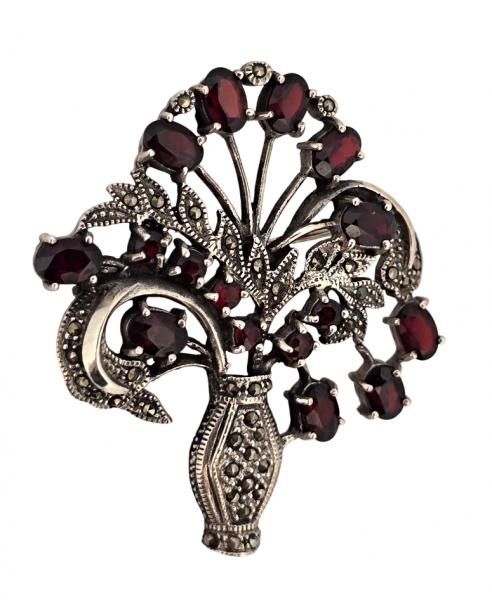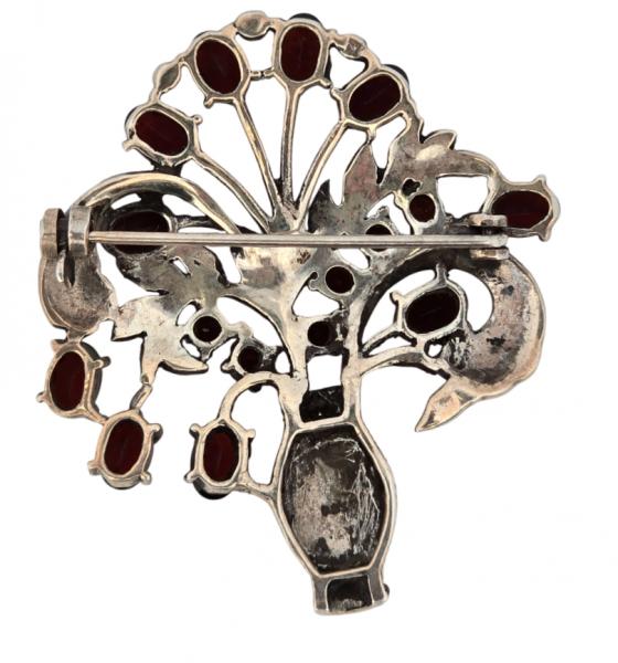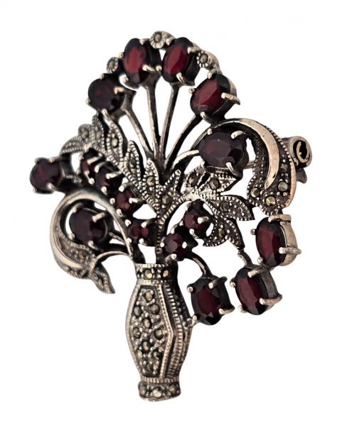 Antique: Silver brooch - silver, Czech garnet - 1920