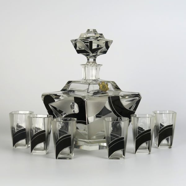 Antique: Decanter set - clear glass - Mechold Brüder - 1930