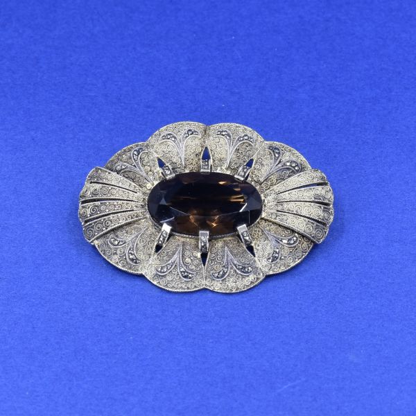 Antique: Silver brooch - glass, silver - Theodor Fahrner (1859 - 1919), Pforzheim - 1930