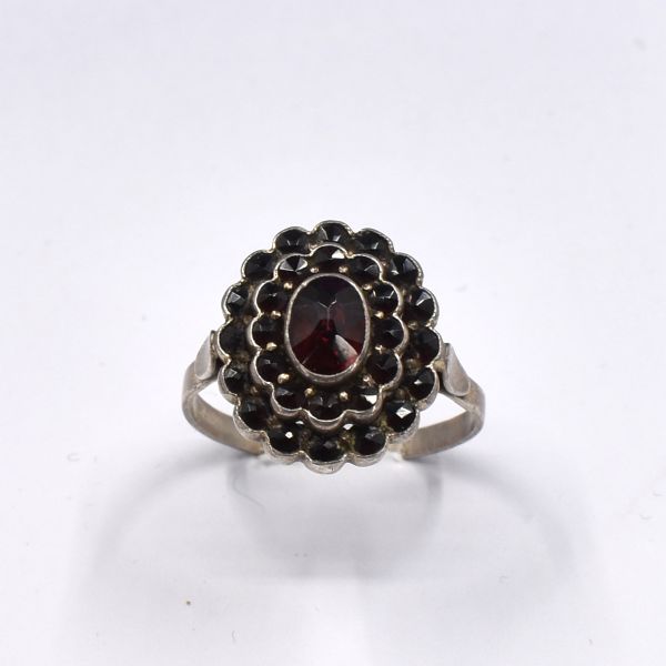 Antique: Silver Ring - silver, Czech garnet - 1920