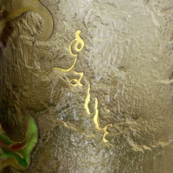 Vase - ocher colored glass - 1900 - detail of advertisement