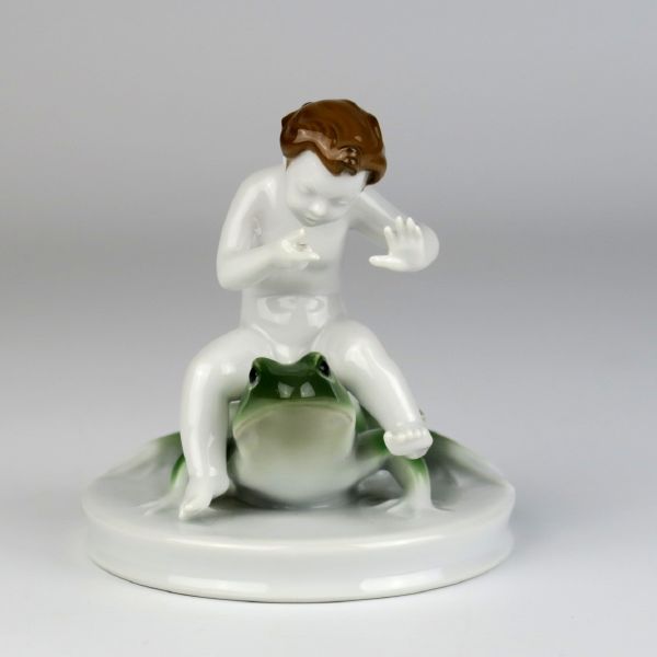 Biscuit ( unglazed porcelain ), painted. Statuette of a standing young man, in...