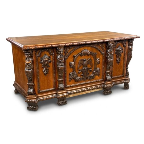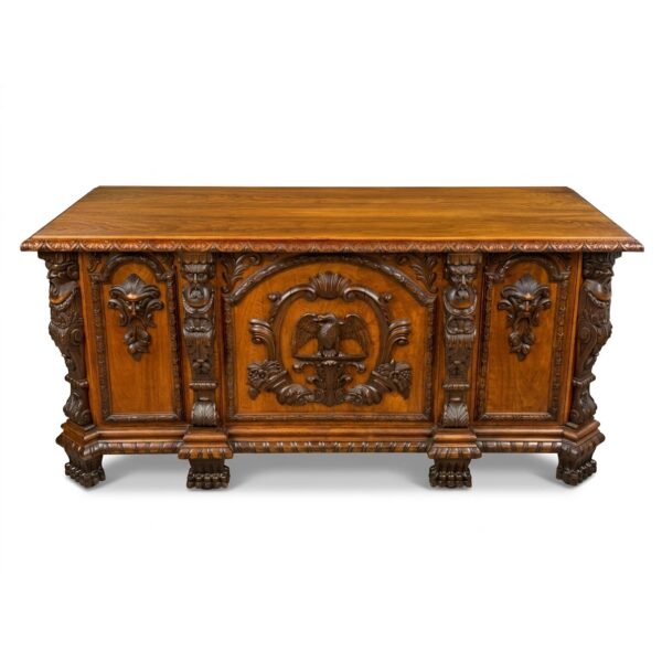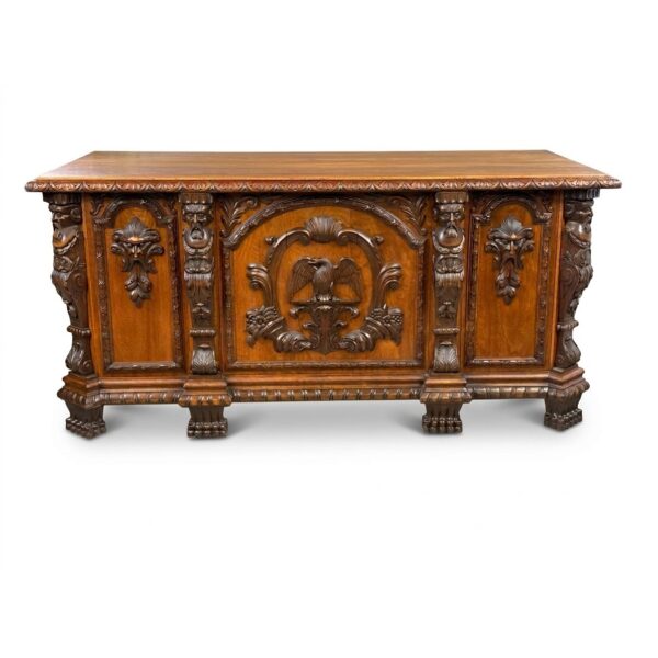 Antique: Writing Desk - wood, brass - 1890