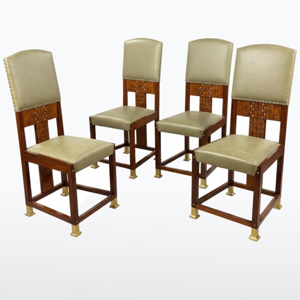 Antique: Four Chairs - solid wood, mahogany veneer - 1900