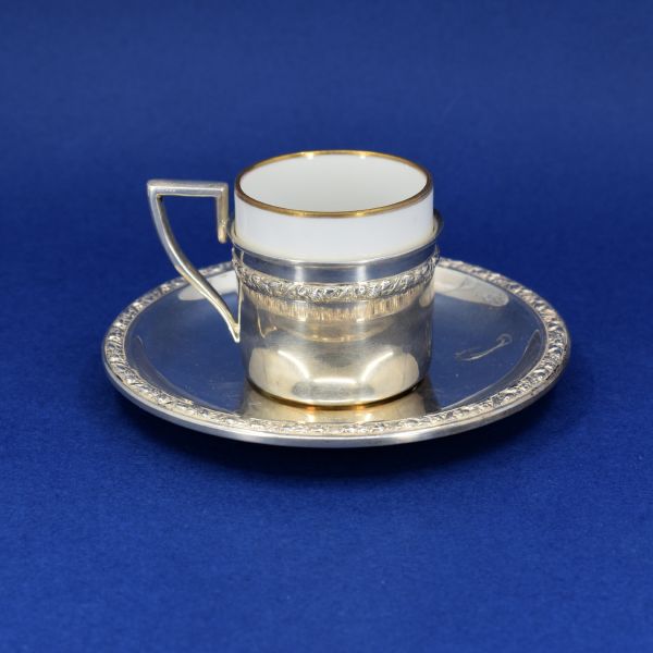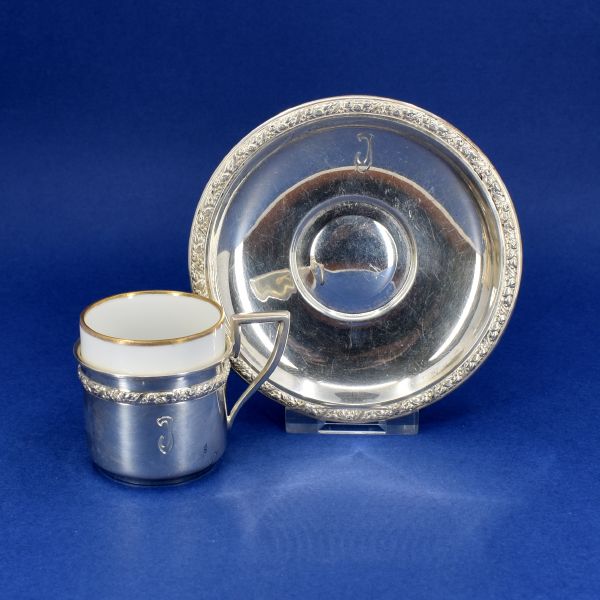 Antique: Silver cup with saucer