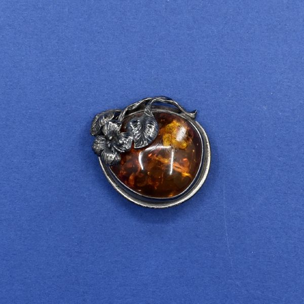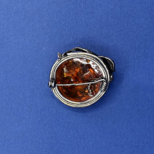 Antique: Silver brooch - silver, amber - 1950