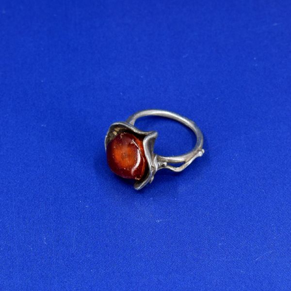 Antique: Silver Ring - silver, amber - 1980
