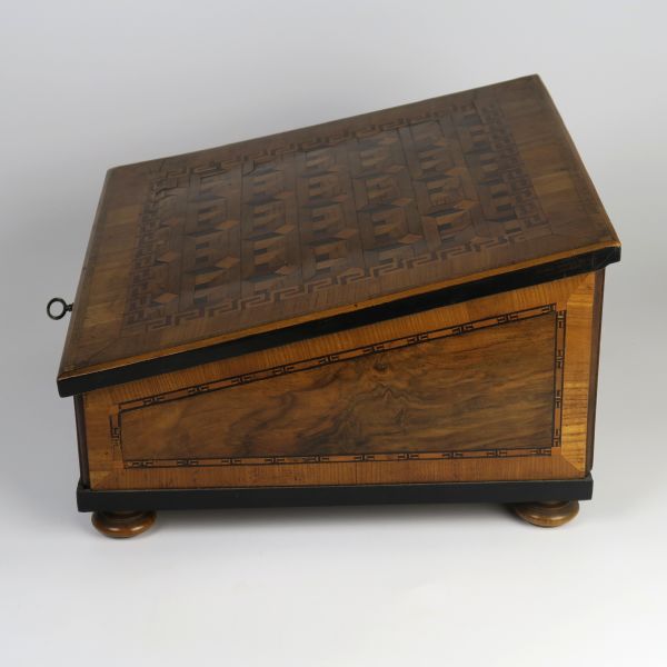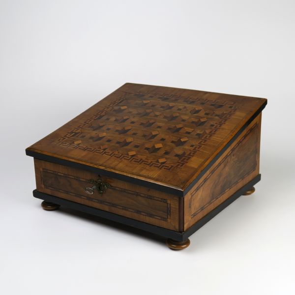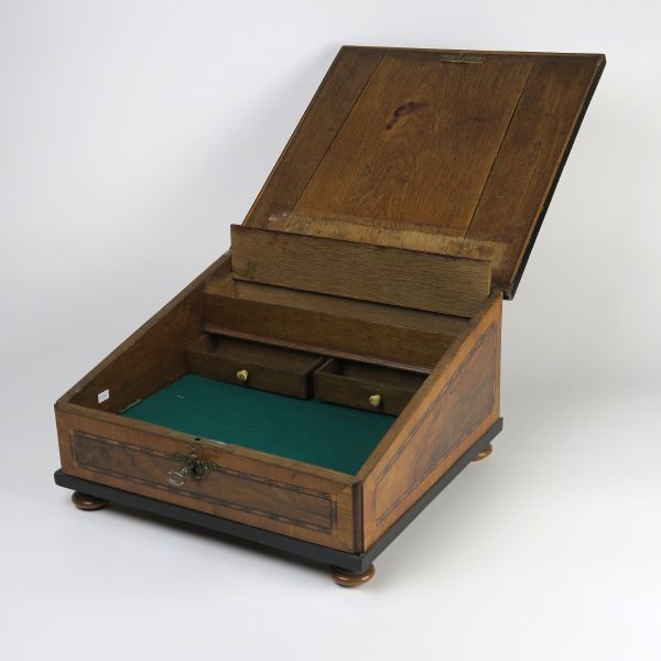 Antique: wooden box - solid oak, walnut veneer - 1810