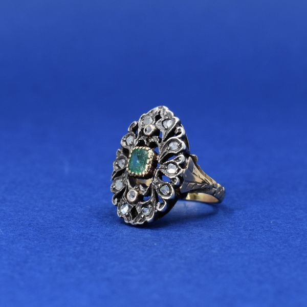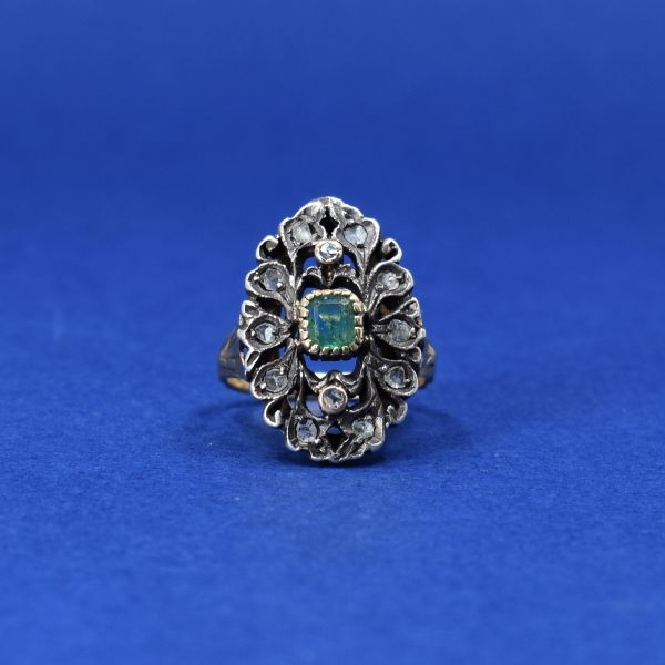 Antique: Gold ring with emerald and diamonds