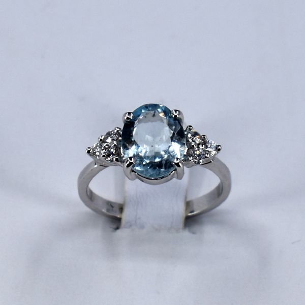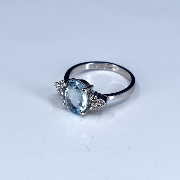 materials: white gold, brilliant cut diamond, aquamarine